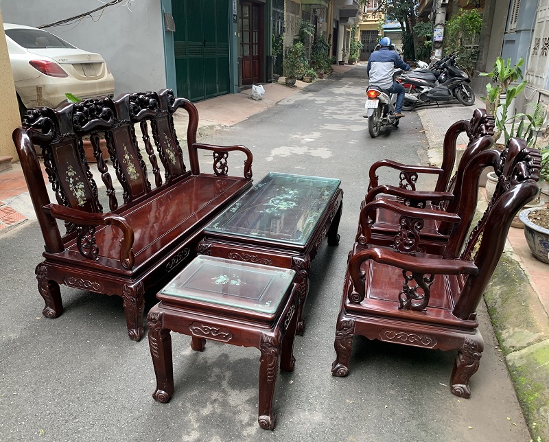 Bộ bàn ghế quốc đào cột 8 gỗ gụ Bộ bàn ghế quốc đào cột 8 gỗ gụ gồm 6 món. 1 ghế dài 2 ghế đơn, 1 bàn, 2 đôn. Bộ bàn ghế được ghệ nhân Đồng Kỵ đóng năm 2005 rất kỹ, trắc chắn. 100% gỗ gụ. Mua hàng liên hệ ngay 0936.681.666