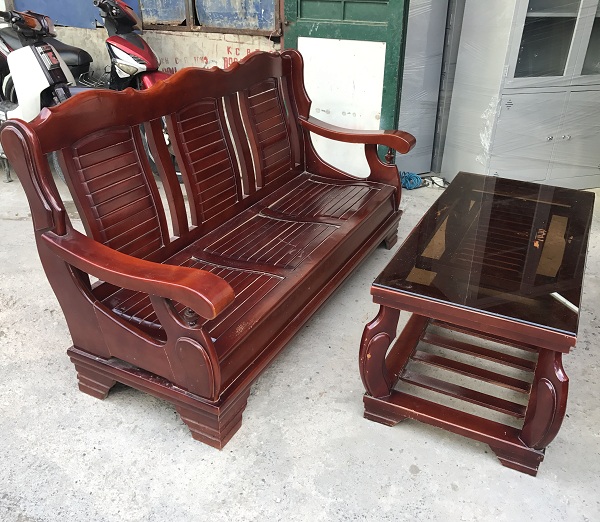 Bộ bàn ghế salon gỗ tự nhiên thanh lý nhanh giá rẻ tại Đồ Cũ Hà Thành