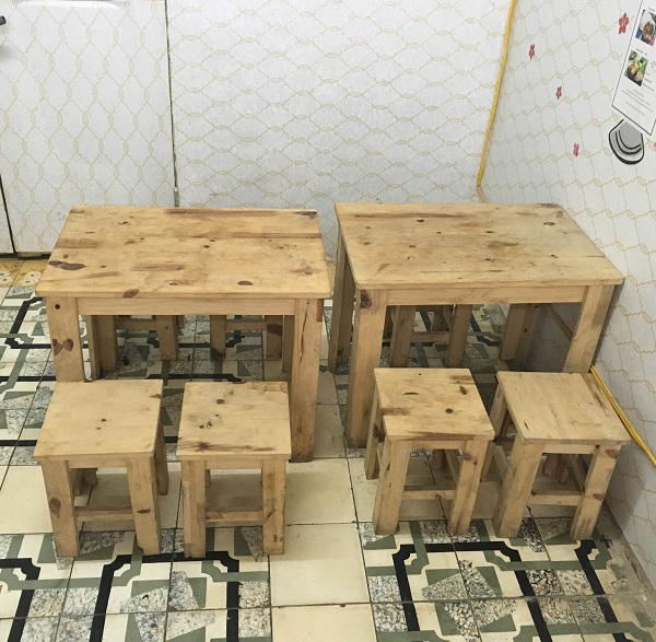 - Bộ bàn ghế ăn gỗ Thông